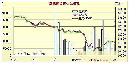12月2日鄭棉期貨低開放量收高窄幅近跌遠(yuǎn)漲