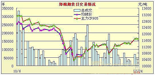 12月24日鄭棉期貨低開窄幅收陽(yáng)交投量繼續(xù)稅減
