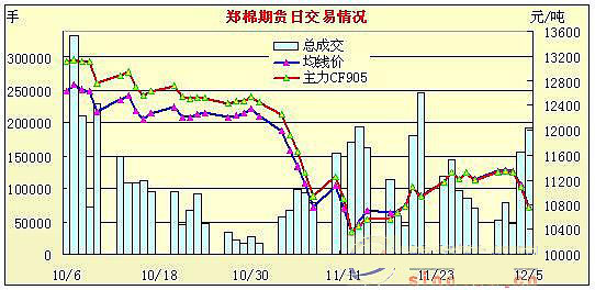 12月5日鄭棉期貨放量增倉再度全線下跌