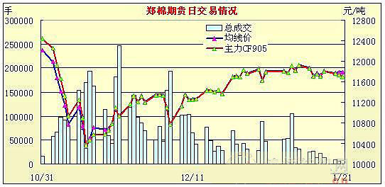 1月21日,鄭棉主力合約CF905低開,早盤在空頭回補推動期價反彈后在多頭平倉打壓下調(diào)整,此后窄幅整理,日線形成陽線星,日線形成陽線星,主要合約成交量萎縮,持倉量減少。C905合約日成交6086手,日減倉1406手,終盤持倉量41062手;CF907合約日成交348手,日減倉22手,終盤持倉量6038;CF909合約日成交1298手,日減倉680手,終盤持倉量5752手。