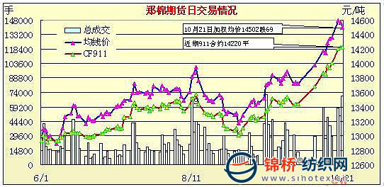 鄭棉期貨減倉(cāng)下跌(10-21)