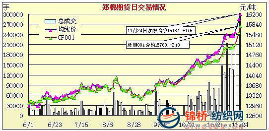 鄭棉期貨放量增倉續(xù)漲百余元(11-24)