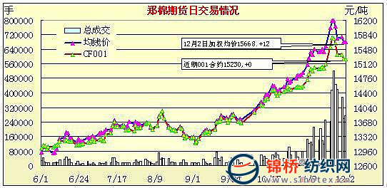 12月2日,鄭棉CF1005合約低開,早盤在買盤據(jù)推動下沖高后受到短線平倉盤壓制回落,此后寬幅震蕩直至收盤,日線形成小陽線,主要合約成交量較前一日略有放大,持倉量增加。CF1001合約日成交1696手,日減倉304手,終盤持倉量19860手;CF1005合約日成交263346手,日增倉7327手,終盤持倉量184196手。基本面情況:現(xiàn)貨價(jià)格穩(wěn)中略有下跌。三級棉成交價(jià)在14800-15000元/噸,四級棉提貨價(jià)14300-14500元/噸。200型廠囤棉有所松動,銷售居多。400型廠及棉商囤棉信心堅(jiān)定,基本未銷售,等待價(jià)格再次上漲。主要受去年棉花種植面積下降及產(chǎn)量降低影響,棉花企業(yè)多反映今年產(chǎn)量要低于預(yù)期,收購量較去年大幅減少,總共沒有收到多少棉花。因此,目前大部分棉企仍不急于出售,即使銷售也是質(zhì)量較差的,質(zhì)量較好的棉花較為惜售,期望銷售價(jià)在15000-15300元/噸?,F(xiàn)貨價(jià)格下調(diào),紡織企業(yè)順價(jià)采購,購買較前期增多,但多是主動尋找買方。 |
