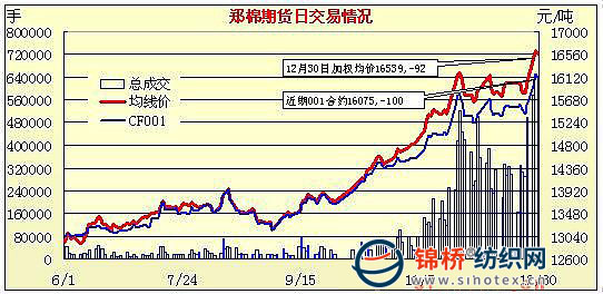 12月30日,鄭棉CF1005合約小幅低開,早盤在多頭買盤推動下沖高,隨后多頭平倉打壓期價創(chuàng)日低,盤中受低位買盤承接回穩(wěn),此后寬幅震蕩,尾盤在空頭回補的支撐下收堅,日線陽線星,主要合約成交量萎縮,持倉量小幅增加。CF1005合約日成交401138手,日增倉2954手,終盤持倉量283552手;CF1009合約日成交40374手,日增倉4840手,終盤持倉量35630手。 基本面情況:現(xiàn)貨市場受此影響,今日價格開始穩(wěn)中上揚,每噸上漲100元左右,三級棉提貨價漲到15000-15100元/噸不等,棉企惜售強烈,大多打算春節(jié)后再銷售,市場成交不活躍。棉花價格的上漲已經(jīng)帶動下游棉紗等產(chǎn)成品有所上漲,因此紡織企業(yè)暫時心態(tài)較為平穩(wěn)。大部分資金較有實力的紡企都反映棉花庫存能用到明年七八月,但大部分小型紡企都是隨用隨買,棉花庫存較低,后期采購將較為困難。