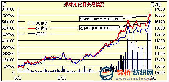 鄭棉期貨放量調(diào)倉(cāng)小幅上漲(12-31)