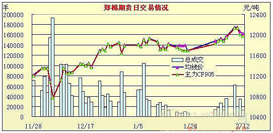 2月12日鄭棉期貨縮量增倉(cāng)小幅低走