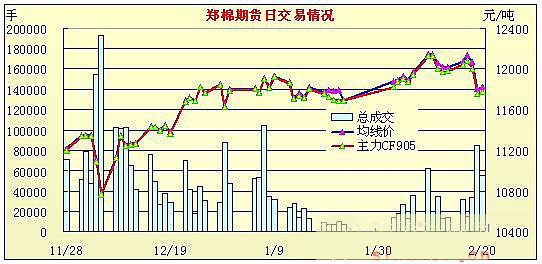 2月20日鄭棉期貨縮量上沖全線收陽