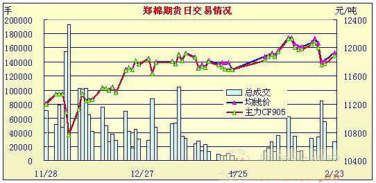 2月23日鄭棉期貨縮量減倉全線上揚(yáng)