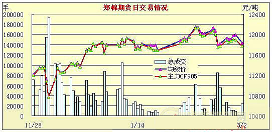 3月2日鄭棉期貨低開陰收全線續(xù)跌