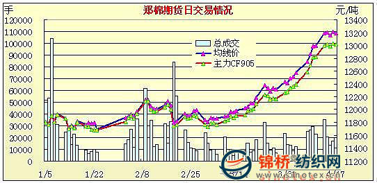 4月17日,鄭棉主力合約CF907高開,早盤橫向整理后一度跳水,隨后空頭回支撐期價反彈,午后在空頭增倉打壓下創(chuàng)日低,尾盤在空頭回補的推動下回升,日線形成高開1/2下引線的陰線,主要合約成交量放大,持倉量變化不大。C905合約日成交988手,日減倉378手,終盤持倉量8086手;CF907合約日成交15236手,日減倉44手,終盤持倉量43712手;CF909合約日成交3470手,日增倉150手,終盤持倉量8330手。基本面情況:近期棉花價格持續(xù)上漲,可謂是漲勢如虹,隨著棉花資源的減少,這種勢頭似乎有增無減,壓花廠一改往日愁容,歡天喜地的賣棉花。棉價的上漲,讓本就處于低迷期的紡織廠更加困難,據(jù)一些紡織企業(yè)反映,現(xiàn)在大家大多不敢接訂單,現(xiàn)在做的大多都是前一陣子的單子或是那些困存充足的紡織廠,這種情況下,紡織廠要么是不接單子,要么就是限產(chǎn)。目前各地的籽棉收購正在逐步縮小,能收上來的籽棉是少之又少,不少地區(qū)現(xiàn)在已在春耕,清明過后給天氣基本穩(wěn)定,陽光、土地濕度良好適宜打缽種植,而目前今年的農(nóng)資價格有所下降,但是整體農(nóng)資成本需要看后期棉農(nóng)的投入及病蟲害情況。美國農(nóng)業(yè)部報告,4.3-4.9一周美國凈簽約出口本年度陸地棉66315噸,較前一周增加15%,但較近四周平均值減1%;裝運52231噸,較前周減20%,較近四周平均值減4%。當周凈簽約出口本年度皮馬棉1429噸,裝運680噸。另簽約出口09/10年度陸地棉27079噸。當周中國凈簽約進口本年度美國陸地棉8618噸,較前一周減63%;裝運本年度陸地棉12360噸,較前周減40%。 |