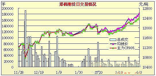 4月3日鄭棉期貨減倉整理中幅上調(diào)