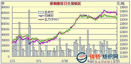 5月21日,鄭棉主力合約影響受到拋儲傳聞影響小幅低開,早盤CF909合約在空頭打壓下走低后一度在多頭買盤支撐下脫離低點,隨后低位整理,尾盤空頭再度發(fā)力打壓CF909合約,CF907合約多頭平倉踴躍,拖累期價尾盤跳水,日線形成陰線,日內(nèi)成交量放大,持倉量增加。CF907合約日成交6028手,日增倉184手,終盤持倉量28574手;CF909合約日成交14198手,日增倉2990手,終盤持倉量24424手?;久媲闆r:現(xiàn)貨市場繼續(xù)冷清,今日除了2級棉上漲較大外,其他等級仍是穩(wěn)中小漲,市場上高等級的供應(yīng)量仍然偏緊,但是成交量依舊不大,市場表現(xiàn)平穩(wěn),等待拋儲。紡織廠采購意愿不強,對拋儲政策望眼欲穿,棉花企業(yè)相對平靜,等待平穩(wěn)渡過。棉副方面,短絨近幾日行情看好,量價齊升,棉粕和棉油價格維穩(wěn)。目前各地棉籽資源所剩不多,產(chǎn)品貨源供應(yīng)緊張,近期市場上價格以維穩(wěn)為主。 |