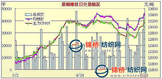 6月16日,主要合約收跌停,影響今日鄭棉CF909合約大幅低開(kāi),早盤(pán)多頭買盤(pán)推動(dòng)期價(jià)快速上沖,午前創(chuàng)日高后寬幅震蕩,日線形成低開(kāi)長(zhǎng)陽(yáng)燭線,日內(nèi)成交量放大,持倉(cāng)量繼續(xù)增加。CF907合約日成交1412手,日增倉(cāng)392手,終盤(pán)持倉(cāng)量6394手;CF909合約日成交41588手,日增倉(cāng)2580手,終盤(pán)持倉(cāng)量38928手?;久媲闆r:現(xiàn)貨價(jià)格基本穩(wěn)定,市場(chǎng)上資源稀缺,現(xiàn)貨的減少使得成交冷清,加上這兩日電子盤(pán)有所回暖,更多的紡織廠開(kāi)始關(guān)注并參與到拋儲(chǔ)中,或自己參與或是委托代理,紡織廠對(duì)陳棉的興趣較大,這從上周陳棉拋儲(chǔ)全部成交的情況中可以看出來(lái)。另?yè)?jù)了解,新疆長(zhǎng)絨棉資源有所減少,價(jià)格有小幅調(diào)高之勢(shì)。目前現(xiàn)拋儲(chǔ)價(jià)格向現(xiàn)貨價(jià)格引導(dǎo)的現(xiàn)象或有所顯現(xiàn),紡織廠根據(jù)需求在拋儲(chǔ)上購(gòu)買棉花,而現(xiàn)貨成交冷清,也說(shuō)明這一現(xiàn)象。