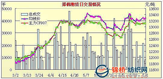 7月1日,鄭棉CF909合約平開,早盤窄幅震蕩,午前在多頭買盤支撐下沖高,午后重心上移窄幅整理,日線形成陽線,日內(nèi)成交量清淡,持倉量微增。CF907合約日成交286手,日增倉6手,終盤持倉量3930手;CF909合約日成交6008手,日增倉206手,終盤持倉量22070手?;久媲闆r:現(xiàn)貨價格繼續(xù)微幅上漲,據(jù)信息員反饋一些地區(qū)現(xiàn)貨價格上漲較為明顯,主要原因是紡織廠拿不出資金來參與國儲競拍,而找代理再加上運費使得皮棉成本較大,所以在現(xiàn)貨上尋找資源,可是現(xiàn)貨資源幾乎殆盡,所以價格上漲較大。另據(jù)調(diào)查采訪了解,紡織廠普遍反映400型的大包棉短絨現(xiàn)象較為嚴(yán)重,在紡紗過程中出現(xiàn)脫絨,紡廠成本有所增加。目前紡織廠也在擔(dān)心后期棉市即拋儲之后、新棉上市之前這段時間,市場上行是否還會有缺口,所以紡織廠競拍棉花除保證生產(chǎn)外,也有在考慮為后幾個月做準(zhǔn)備。