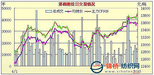 7月23日,鄭棉CF909合約早盤平開盤整,午間多頭買盤增量推動期價走高,午后重心上移盤整,日線形成長陽線,日內成交量放大,持倉量大量增加;CF1001合約早盤沖高后受平倉盤打壓回落,午前多頭買盤再涌,期價隨之迅速上沖創(chuàng)日高,但是期價再度遭遇平倉盤打壓調整,午后窄幅整理,尾盤在空頭賣盤打壓下收低,日線形成星線,日內成交量萎縮,持倉量小幅增加。CF909合約日成交4500手,日減倉1174手,終盤持倉量23366手;CF1001合約日成交9688手,日減倉446手,終盤持倉量32774手。基本面情況:受拋儲價格上漲影響,現(xiàn)貨價格繼續(xù)上漲,但是各地漲幅開始趨緩,持有國儲棉的棉商改變了放緩銷售的心理,出貨意圖明顯,但成交依舊不大。對于目前市場的走勢,許多紡織廠表示出了觀望的心理,主要原因是前期競拍的棉花正在出庫中,尚有庫存可用,不急于購棉,對市場價格有看低心理。其次是,預計此次計劃拋儲的52.3萬噸陳棉會在今日結束,后期是否會追加競拍量,以及陳棉過后09年度的收儲棉價格又會有怎樣的走勢,引起市場關注,市場隱現(xiàn)觀望情緒。
