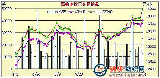 7月24日,鄭棉CF909合約早盤高開高走,盤中橫向整理,日線形成長陽線,日內(nèi)成交量放大,持倉量減少;CF1001合約早盤小幅高開,午前多頭買盤推動期價走高,午后在多頭平倉盤的打壓下波段走低,日線形成陽線星,日內(nèi)成交量放大,持倉量小幅增加。CF909合約日成交5234手,日減倉548手,終盤持倉量22818手;CF1001合約日成交7964手,日增倉430手,終盤持倉量33204手?;久媲闆r:各地現(xiàn)貨價格基本保持穩(wěn)定,由于從本周開始禁止代理商競拍,加上昨日儲備棉競拍價格大幅下跌,成交量萎縮,使得現(xiàn)貨上有棉花的企業(yè)開始積極出棉,但是總量不大。主要原因是前期競拍的棉花大多數(shù)是與紡織廠簽約的代理棉花,實際上自己打算存棉花的代理商,存量不是很大。從近兩天的競拍情況上看,價格開始回落,新的調(diào)整政策起到了穩(wěn)定價格的作用,但是在中小紡織廠中也出現(xiàn)了一些問題,主要是資金緊張無法參與競拍,使得生產(chǎn)庫存緊缺,出現(xiàn)無米下鍋的局面。