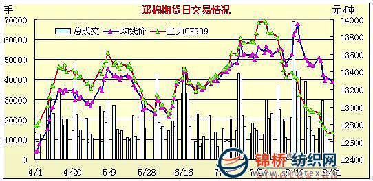 8月31日,鄭棉CF1001合約高開,早盤多頭平倉打壓期價(jià)下滑,隨后盤整走跌,午后橫向增倉整理,尾盤在空頭賣盤打壓下增倉跳水,尾盤受到空頭短線回補(bǔ)支撐小幅反彈,日線形成高開陰線,主要合約成交量溫和放大,持倉量變化不大。CF1001合約日成交12238手,日增倉74手,終盤持倉量34978手;CF1005合約日成交802手,日增倉120手,終盤持倉量5122手?;久媲闆r:皮棉現(xiàn)貨價(jià)格繼續(xù)下挫,新花雖是零星上市,但是對市場利空因影響依然較大,紡織廠維持觀望,采購低迷,電子盤也是持續(xù)震蕩低位調(diào)整,整體市場處于低位看空階段。新花上市方面:河北威縣地區(qū)個(gè)別棉企新棉收購已經(jīng)開始,收購價(jià)格2.95-3元/斤,日收購量2000公斤左右,收購上來的新棉花質(zhì)量次而且水分大。而棉農(nóng)交售并不積極,都準(zhǔn)備大量采摘后集中交售。陜西大荔地區(qū)新花陸續(xù)采摘,目前有兩三家少量收購,個(gè)別廠家日收購量1000-3000斤,軋花廠為避免風(fēng)險(xiǎn),收購價(jià)格不敢沖高,多數(shù)維持在2.90元/斤一線。