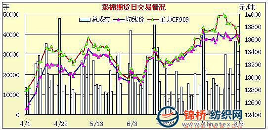 鄭棉期貨近期合約跌破均線(xiàn)(8-5)