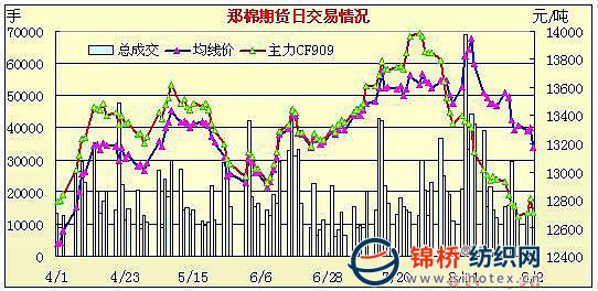 9月2日,鄭棉CF1001合約大幅低開,早盤反彈后增倉回落,午前盤整換手,午后在空頭賣盤打壓下測試支撐位,隨后在空頭回補支撐下反彈,日線形成低開陰線,主要合約成交量變化不大,持倉量小幅減少。CF1001合約日成交13206手,日減倉686手,終盤持倉量34742手;CF1005合約日成交916手,日增倉56手,終盤持倉量5156手。基本面情況:現(xiàn)貨價格繼續(xù)走低,跌幅較前期有所加深,儲備棉競拍價格連續(xù)兩日小幅上漲,但是并沒有對現(xiàn)貨起到支撐作用,近兩日參與人數(shù)的偏少,成交比例的萎縮也反映出了市場看空的氣氛。截止8月31日,國儲棉競拍累計成功拋售儲備棉1526062噸,其中2008年度儲備棉998814噸,2003/2004年度棉花527248噸,第一批拋儲計劃基本完成。新年度開始,各棉區(qū)開秤范圍擴大,200型的小廠和棉販?zhǔn)召彿e極,400型的廠大多按兵不動,等待市場價格的進(jìn)一步走勢。開秤的企業(yè)表示今天開秤價格普遍高于去年,南部棉區(qū)收購價普遍在2.7-2.85元/斤,北部棉區(qū)在2.8-3元/斤;對目前的收購價格,棉農(nóng)大多并不認(rèn)同,惜售現(xiàn)象凸顯,只有少數(shù)家里要給孩子籌學(xué)費的棉農(nóng)出貨積極。
