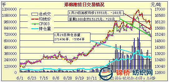 1月29日,鄭棉主要合約小幅平開(kāi),CF1009合約早盤(pán)反復(fù)震蕩,午前一度在空頭打壓下跳水,隨后在多頭買(mǎi)盤(pán)支撐下回升,此后窄幅震蕩,日線形成陰線星,日內(nèi)成交量溫和萎縮,持倉(cāng)量減少。CF1005合約日成交17392手,日減倉(cāng)1508手,終盤(pán)持倉(cāng)量106090手;CF1009合約日成交140756手,日減倉(cāng)5428手,終盤(pán)持倉(cāng)量128528手?;久媲闆r:現(xiàn)貨價(jià)格繼續(xù)下跌,跌幅較前日有所加大。春節(jié)前大部分紡織廠資金壓力較大,采購(gòu)力減弱,尤其是小型紡織廠,年前還貸壓力較大。貨幣緊縮預(yù)期越來(lái)越濃,現(xiàn)貨價(jià)格表現(xiàn)疲軟,這些因素都引發(fā)電子盤(pán)震蕩。據(jù)駐地信息員放映,目前一些地區(qū)手中有好棉花的棉販見(jiàn)盼漲無(wú)望,開(kāi)始出售手中籽棉;也有一些地區(qū)籽棉等級(jí)僅為5級(jí),棉花企業(yè)也已停止收購(gòu),加工者較少;同時(shí)臨近春節(jié),有棉花企業(yè)在下個(gè)星期開(kāi)始將陸續(xù)放假。 |