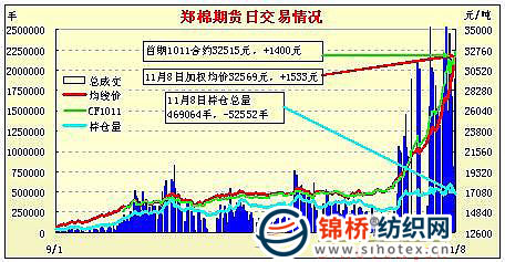 鄭棉期貨上沖高位震蕩大漲千余元四連大幅減持(11-8)