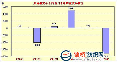 11月9日,鄭棉主要合約開盤后在空頭打壓下迅速下跌,隨后空頭回被推動(dòng)期價(jià)自低位反轉(zhuǎn)回升震蕩,午后震蕩幅度加大,日線形成長(zhǎng)下影線的星線,日內(nèi)成交量放大,遠(yuǎn)期合約成交量創(chuàng)上市以來新高,持倉(cāng)量變化不大。CF1105合約日成交1694108手,日減倉(cāng)5022手,終盤持倉(cāng)量292994手;CF1109合約日成交931172手,日減倉(cāng)7304手,終盤持倉(cāng)量135224手?;久媲闆r:企業(yè)收購(gòu)積極,籽棉價(jià)格突破7元/斤,山東最高價(jià)格已到7.1元/斤,各地區(qū)收購(gòu)價(jià)格普遍到6.8元/斤左右,棉籽突破2.1元/斤,棉企加工成本達(dá)到29000-30000元/噸。部分紡企采購(gòu)積極,但成交量很少,棉企多囤棉惜售。