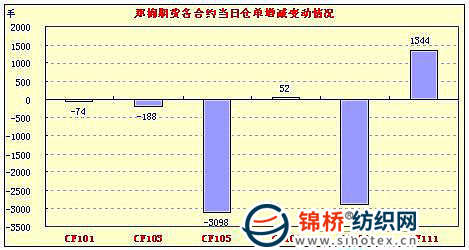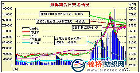 12月31日,鄭棉CF1109合約小幅低開,早盤在多頭買盤推動下沖高,此后區(qū)間震蕩,日線形成低開陽線,日內(nèi)成交量萎縮,持倉量下降。CF1105合約日成交24368手,日減倉3098手,終盤持倉量53844手;CF1109合約日成交728444手,日減倉2888手,終盤持倉量223612手?;久媲闆r:現(xiàn)貨市場價格平穩(wěn),成交低迷不改,市場將在這種氣氛中迎來2011。據(jù)中國棉花協(xié)會了解,2011年棉花進口配額已經(jīng)發(fā)放至企業(yè),包括89.4萬噸進口關稅配額和170萬噸滑準稅配額。明年將視國內(nèi)外棉價走勢和新疆棉運銷情況增發(fā)配額。從紗廠方面了解,目前價格基本穩(wěn)定,一些銷售好轉(zhuǎn)的企業(yè),棉紗價格還上調(diào)了幾百元,但也有一些資金緊張的企業(yè)繼續(xù)下調(diào)報價,因為幾年棉花價格偏高,占用企業(yè)資金量較大,而目前庫存又多,因此資金壓力比較大。