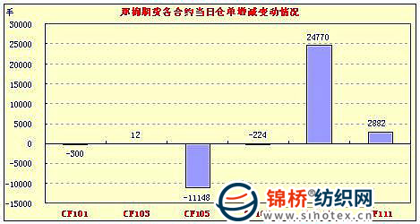 12月6日,鄭棉CF1109合約高開,早盤沖高后在空頭賣盤打壓下回落,午后重心下移震蕩,尾盤受到多頭平倉打壓收弱,日線形成高開小陰線,日內(nèi)近月成交量萎縮,持倉量近減遠(yuǎn)增。CF1105合約日成交179542手,日減倉11148手,終盤持倉量100064手;CF1109合約日成交1861900手,日增倉24770手,終盤持倉量243704手?;久媲闆r:現(xiàn)貨成交略有增加,紡織企業(yè)詢價(jià)較多,接貨仍很少,棉企零星出售。加工廠略上調(diào)籽棉收購價(jià)格,棉農(nóng)少部分交售,價(jià)格在5.1-5.6元/斤左右。現(xiàn)貨有企業(yè)內(nèi)地新疆棉好三級(jí)出貨28000元/噸,公重,自提。下游紗線仍低迷不振,紡織廠多是按訂單采購皮棉。