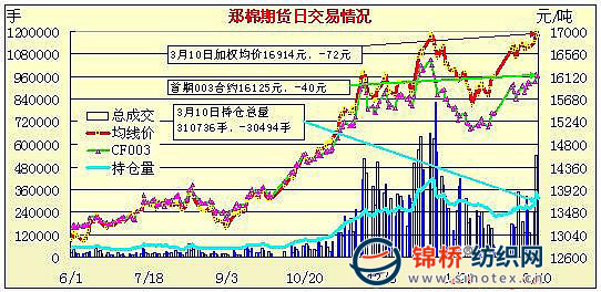 鄭棉期貨受紐期影響拋持打壓下挫(3-10)