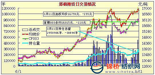 3月11日鄭州商品交易所棉花期貨成交及持倉排名表