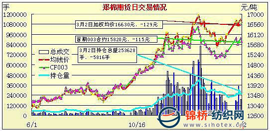 3月2日鄭州商品交易所棉花期貨成交及持倉排名表