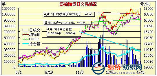 4月13日鄭州商品交易所棉花期貨成交及持倉排名表