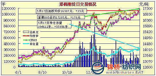 鄭棉期貨5月合約清倉放量大幅上漲(5-17)