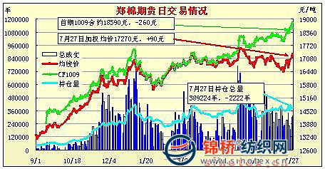 鄭棉期貨結(jié)束三連陽高開下滑放量下跌(7-27)