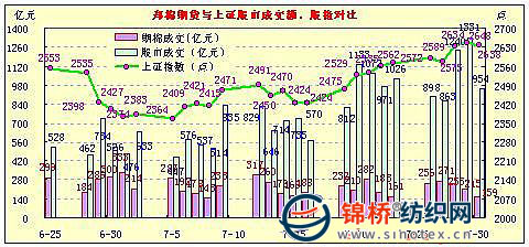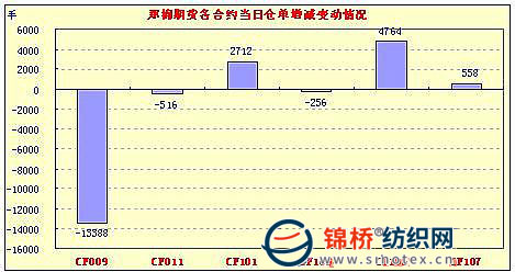 7月30日,鄭棉CF1009合約高開,盤中在空頭回補(bǔ)的支撐下回穩(wěn),午后上行,日線形成陽線,日內(nèi)成交量萎縮,持倉量大幅減少。鄭棉CF1101合約小幅高開,早盤震蕩整理,午后多頭買盤與空頭回補(bǔ)的支撐下走強(qiáng),日線形成陽線,日內(nèi)成交量萎縮,持倉量略有增加。CF1009合約日成交20680手,日減倉13388手,終盤持倉量60744手;CF1101合約日成交131912手,日增倉2712手,終盤持倉量198482手。基本面情況:今日股市期貨資金出逃成交萎縮,股指小幅回落,期棉中幅收陽。上證股指收于2637.50點,跌10.62點,跌幅0.4%;成交954.01億元,減少376.51億元,降幅28.3%。鄭棉期貨成交19.01萬手,續(xù)減6.57萬手,下降25.7%;成交額159.05億元,減少55.75億元,下降26%。受政策性壓力預(yù)期增加影響,紡企都開始拭目以待拋儲出臺,幾乎停止采購。棉商小幅調(diào)低銷售報價,但成交寥寥無幾,并且下游紗線銷售不景氣,每噸掉價達(dá)兩三千元左右,部分庫存較大的紡織廠也開始銷售棉花,降低庫存。