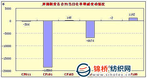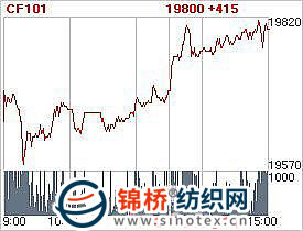 9月17日,周四紐期繼續(xù)上漲,鄭棉主要合約大幅高開,CF1101合約早盤在逢高平倉盤打壓下回落,隨后在空頭回補(bǔ)推動下回穩(wěn)盤整,午后空頭回補(bǔ)買盤持續(xù)推動期價上行,重心隨之上移;CF1105合約早盤增倉盤整,午后在多頭買盤推動下重心上移整理,尾盤在空頭集中回補(bǔ)的支撐下收堅。主要合約日線形成高開陽線,日內(nèi)成交量萎縮,持倉量減少。CF1101合約日成交181872手,日減倉18560手,終盤持倉量133360手;CF1105合約日成交737124手,日減倉6674手,終盤持倉量324244手。基本面情況:新棉開秤地區(qū)增多,籽棉收購價繼續(xù)上調(diào),收購企業(yè)仍多為200型棉企,由于收購價居高,風(fēng)險較大,多數(shù)大型棉企繼續(xù)保持觀望。截止目前加工出的皮棉只能達(dá)到弱三級,少量成交,成交價在18100-18500元/噸左右。部分紡織企業(yè)開始尋買新棉,但三級基本找不到。