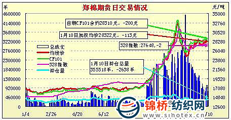 1月10日鄭州商品交易所棉花期貨成交及持倉(cāng)排名表