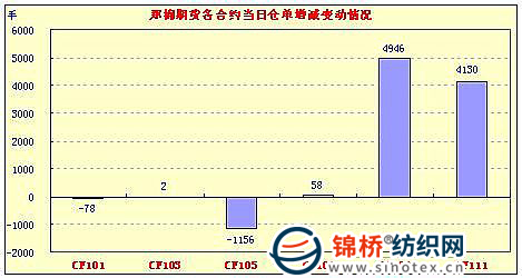 1月13日,鄭棉CF1109合約小幅高開,早盤下探后在多頭買盤推動下反抽,隨后在平倉盤打壓下波段下滑,日線形成小陰線,日內(nèi)成交量萎縮,持倉量微增。CF1105合約日成交10144手,日減倉1156手,終盤持倉量47722手;CF1109合約日成交603808手,日增倉4946手,終盤持倉量242516手?;久媲闆r:現(xiàn)貨報(bào)價(jià)繼續(xù)小幅上漲,但是成交依舊不溫不火。據(jù)了解目前市場上想要新疆棉的不少,電話打了也不少,但是實(shí)質(zhì)成交的也少;今年內(nèi)地棉花質(zhì)量欠佳,高等級的棉花更是稀缺,所以企業(yè)咬價(jià)很緊。紡織廠也有想要買棉花的,但是價(jià)格壓的低成交的不多。另據(jù)了解,12月份企業(yè)銷售進(jìn)度緩慢,庫存增加較大,多數(shù)棉企對春節(jié)后行情多堅(jiān)持看漲。