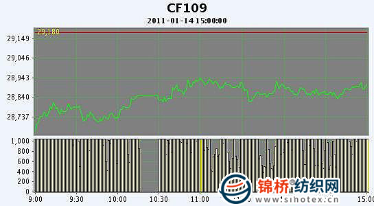 1月14日,鄭棉CF1109合約小幅高開(kāi),盤(pán)中多頭買(mǎi)盤(pán)與空頭回補(bǔ)支撐下反彈,午前創(chuàng)日高,午后區(qū)間震蕩減倉(cāng),日線(xiàn)形成低開(kāi)陽(yáng)線(xiàn),日內(nèi)成交量萎縮,持倉(cāng)量下滑。CF1105合約日成交11110手,日增倉(cāng)274手,終盤(pán)持倉(cāng)量47996手;CF1109合約日成交404960手,日減倉(cāng)8924手,終盤(pán)持倉(cāng)量233592手?;久媲闆r:現(xiàn)貨報(bào)價(jià)小幅上揚(yáng),由于紡織廠春節(jié)前補(bǔ)庫(kù),市場(chǎng)報(bào)價(jià)有所上調(diào),但是支撐力不強(qiáng),中小紡織廠用滌綸、粘膠替代棉花十分明顯。一些加工成本控制在28000元/噸上下的棉企對(duì)市場(chǎng)表現(xiàn)迷茫,但是有積極看好春節(jié)后市場(chǎng),目前可以說(shuō)是咬牙撐著熬,資金方面捉襟見(jiàn)肘,固對(duì)春節(jié)后市場(chǎng)上漲抱有強(qiáng)烈愿望。