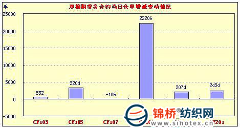 1月27日,鄭棉CF1109合約高開,早盤反復震蕩,多頭買盤與空頭回補支撐期價盤升,午后多頭買盤再涌,推動期價迅速走高,終盤收于日內(nèi)相對高位,日線形成高開陽線,日內(nèi)成交量萎縮,持倉量增加。CF1109合約日成交1012042手,日增倉22206手,終盤持倉量286178手;CF1111合約日成交46760手,日增倉2074手,終盤持倉量55566手。基本面情況:現(xiàn)貨價格大幅上漲,但是紡織廠已陸續(xù)放假,需求階段性下滑,所以盡管現(xiàn)貨棉花報價繼續(xù)上漲但成交清淡。24日三大期貨公司分別出臺春節(jié)前后市場風險防控措施,自1月31日結算時起上調相關期貨合約的漲跌停板幅度和保證金標準,自2月9日結算時起,對未出現(xiàn)單邊市的合約,漲跌停板幅度和保證金標準恢復到調整前水平;預計春節(jié)前期貨價格難有大漲,需注意節(jié)前資金撤離風險。