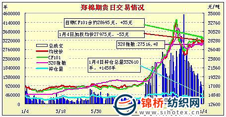 1月4日鄭州商品交易所棉花期貨成交及持倉排名表