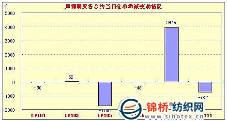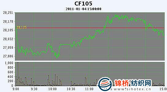 1月4日,鄭棉CF1109合約小幅低開,早盤下探后低位整理增倉,隨后在空頭回補與多頭買盤推動下走高,午后創(chuàng)日高后回落,日線形成低開陰線星,日內(nèi)成交量萎縮,持倉量增加。CF1105合約日成交18396手,日減倉1700手,終盤持倉量52144手;CF1109合約日成交728444手,日增倉3976手,終盤持倉量227588手?;久媲闆r:國內(nèi)棉花現(xiàn)貨行情繼續(xù)保持不溫不火,成交清淡,據(jù)反應(yīng)部分地區(qū)實際成交價格仍有下降。目前紗線價格開始相對穩(wěn)定,不少地區(qū)大廠今日開始提高報價。2010年最后一個交易日內(nèi),國內(nèi)兩個棉花電子盤紛紛上漲收陽,成交量均有所放大,遠月沖高明顯。
