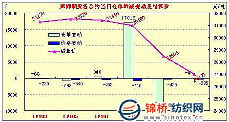 2月24日,鄭棉CF1109合約小幅高開,盤中在空頭賣盤打壓下走低,午間期價加速下行測試3萬元關(guān)口后受到短線回補(bǔ)盤支撐反彈,日線形成高開長陰線,日內(nèi)成交量放大,持倉量增加。CF1109合約日成交1597824手,日增倉17016手,終盤持倉量302352手;CF1111合約日成交50442手,日減倉7656手,終盤持倉量38098手。基本面情況:現(xiàn)貨報價開始松動,內(nèi)地棉價下跌500元/噸左右,但是新疆棉報價堅挺,暫時未動。值得關(guān)注的是下游紗線市場看似很好,但是由于成本上升,加上紡廠之間互相打價格戰(zhàn),利潤空間并不大。