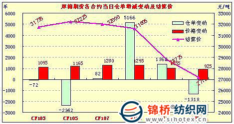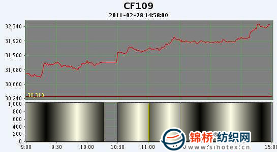 2月28日,鄭棉CF1109合約高開,早盤在多頭買盤推動(dòng)下波段上行,午后橫盤整后繼續(xù)沖高,尾盤少量獲利回吐盤打壓期價(jià)脫離高點(diǎn),但很快受到空頭回補(bǔ)支撐反抽,日線形成高開長陽線,日內(nèi)成交量較前一日萎縮,持倉量增加。CF1109合約日成交1278682手,日增倉5166手,終盤持倉量304982手;CF1111合約日成交24412手,日增倉1368手,終盤持倉量39210手。基本面情況:電子盤的連續(xù)走低一些缺少庫存的紡織廠開始在電子盤上接貨,新疆棉詢價(jià)熱情依然不減,疆棉報(bào)價(jià)堅(jiān)挺。
