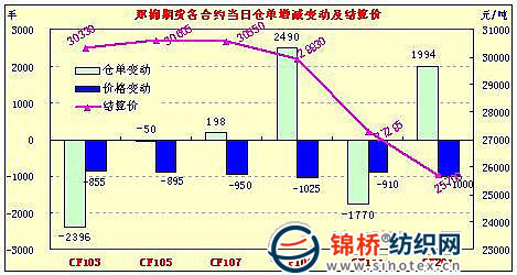 3月14日,鄭棉CF1109合約小幅高開,早盤慣性上沖后在空頭賣盤打壓下走低盤整,午后繼續(xù)下行創(chuàng)日低,隨后受到空頭回補(bǔ)與短線多頭買盤支撐止跌,尾盤因空頭短線回補(bǔ)盤支撐反彈,日線形成長陰線,日內(nèi)成交量放大,持倉量小幅增加。CF1109合約日成交2366412手,日增倉2490手,終盤持倉量389094手;CF1111合約日成交23938手,日減倉1770手,終盤持倉量37644手?;久媲闆r:現(xiàn)貨上棉商報(bào)價以出現(xiàn)滯漲,部分棉商出貨意愿明顯增強(qiáng),尤其是手中存棉較多的棉商積極聯(lián)系下游紡廠,另一方面電子盤的連續(xù)下探企業(yè)為保證利潤希望落袋為安。下游紡織廠采購不給力,相對于高棉價來說,棉紗銷售價格不漲反降,企業(yè)庫存壓力逐漸增加。受到現(xiàn)貨方面的影響,籽棉收購價格有所下調(diào),但收購量有所增加。