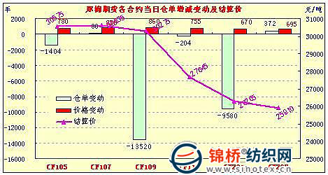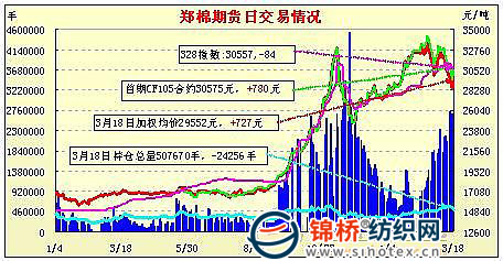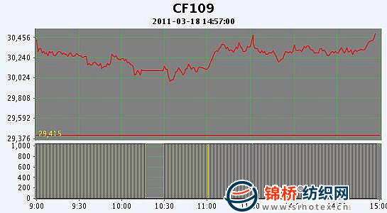 3月18日,鄭棉CF1109合約高開,早盤受空頭打壓下滑創(chuàng)日低,盤中低位放量換手,隨后多頭買盤支撐期價(jià)拉升,午后震蕩整理,尾盤在空頭集中回補(bǔ)推動(dòng)下迅速?zèng)_高,日線形成高開陽線,日內(nèi)成交量萎縮,持倉量繼續(xù)減少。CF1109合約日成交1627902手,日減倉13520手,終盤持倉量346248手;CF1111合約日成交11422手,日減倉204手,終盤持倉量34602手?;久媲闆r:電子盤低位反彈,給恐慌中的棉企帶來一刻的冷靜,高等級(jí)現(xiàn)貨報(bào)價(jià)企穩(wěn),低等級(jí)棉報(bào)價(jià)繼續(xù)小幅下調(diào)。由于日本核輻射危機(jī)引起市場(chǎng)的恐慌,電子盤的反彈是因?yàn)橥顿Y者逢低買進(jìn),現(xiàn)貨實(shí)際銷售仍然不佳,所以棉商對(duì)于后市看好的預(yù)期減弱。現(xiàn)貨實(shí)際成交十分清淡,籽棉收購價(jià)格也隨之下調(diào),但是籽棉降價(jià)難收,棉企為規(guī)避風(fēng)險(xiǎn),只好停收觀望,市場(chǎng)靜待調(diào)整。