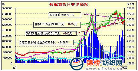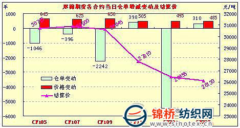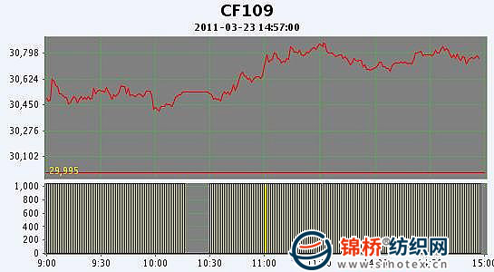 3月23日,鄭棉CF1109合約高開,早盤反復(fù)震蕩,午間在空頭回補(bǔ)推動下沖高,午后高位震蕩,日線形成高開陽線,日內(nèi)成交量萎縮,持倉量增加。CF1109合約日成交1479724手,日減倉2242手,終盤持倉量353614手;CF1111合約日成交6686手,日增倉398手,終盤持倉量35020手?;久媲闆r:現(xiàn)貨報價企穩(wěn),市場成交依舊不旺,棉企方面雖然有落袋為安的心理,但跌出他們的心理價格是不可能出手的,棉紗價格繼續(xù)疲軟,紡織廠購買消極,隨用隨買。據(jù)駐地信息員反饋,山東魏橋紡織下調(diào)其皮棉采購價后,前來交貨的企業(yè)寥寥,畢竟低價格采購難度加大。電子盤持續(xù)盤整,現(xiàn)貨成交處于拉鋸狀態(tài),市場氣氛不佳。