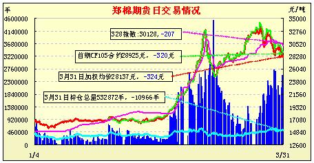 3月31日鄭州商品交易所棉花期貨成交及持倉(cāng)排名表