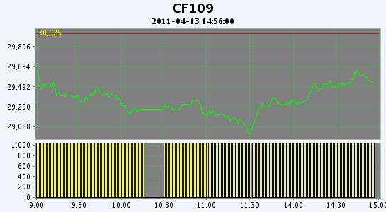 主力CF109合約當(dāng)日交易走勢
