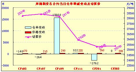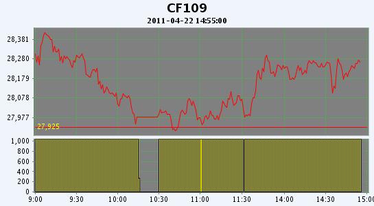 4月22日,鄭棉CF1109合約高開上沖后回落,午后多頭買盤支撐期價回升,尾盤受到空頭短線回補支撐收強,日線形成高開小陽線,日內(nèi)成交量變化不大,持倉量增加。CF1109合約日成交2052844手,日增倉15668手,終盤持倉量413912手;CF1201合約日成交270754手,日減倉2762手,終盤持倉量132780手?;久媲闆r:許多地方棉商或是軋花廠停止了報價,因為不知道該報成什么價格了,紡織廠報價是越壓越低,棉花企業(yè)價格談不好,生生的著急。有點棉花庫存的紡織廠不進棉花了,個別下游有出貨的大廠少量采購。目前黃河流域正值春播階段,近期氣溫升高,大風(fēng)天氣頻頻出現(xiàn),而入春以來該地區(qū)無明顯的大范圍降雨,旱情露頭,對棉花播種出苗不利。